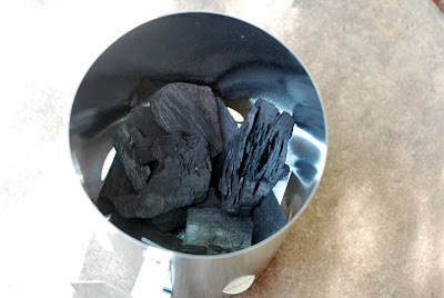 I went out and bought a cool metal chimney. No matter what type of charcoal you prefer, I suggest you get one of these if you don’t have one yet. Go ahead and put some paper trash on the bottom.
