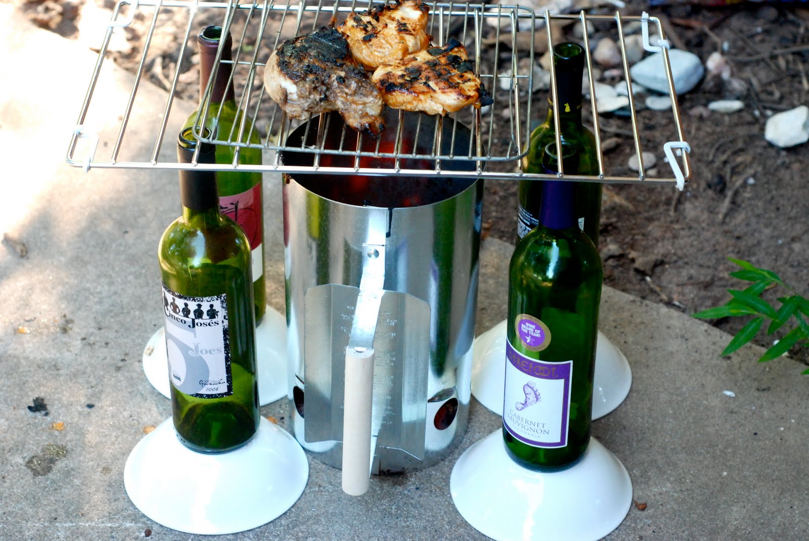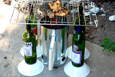 At this point you’re supposed to pour this in a real grill. Well, the night before our grill was taken… but I had just gone to the store to buy all this crap so I was going grill, dangit. My grandmother gave me some cooling racks for cookies… they were still in my trunk. So I used the cooling rack for a grill grate.