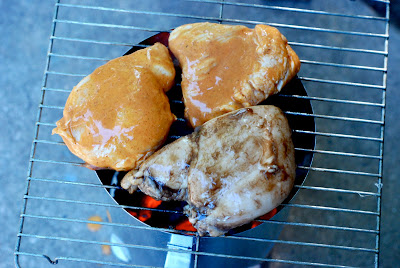 FYI: One of the pieces was simply marinated in balsamic vinegar and the others were marinated with a Carolina Treet BBQ sauce.