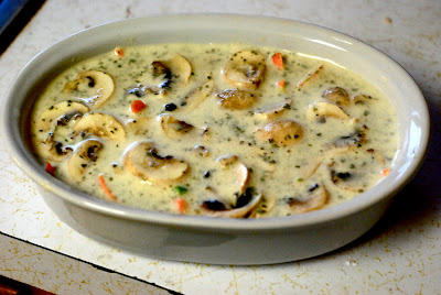 Start by putting your choice of veggies in an oven safe dish like this. I used carrots, mushrooms, and avocado because it’s all I had left. I would recommend using stronger tasting veggies though- like green peppers, onions, etc. I thought mine was a little bland. I’m also a huge fan of feta cheese, so if you have some try it! Or any other kinds of cheese if you want. If you got a raise at work or are feeling extra flavor hungry, add some cooked bacon. (Shhh…. you didn’t hear that from me…)