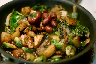 While that balsamic reduces and coats the veggies, add a handful of Kalamata olives. I LOVED the saltiness of these things in there. Yum.